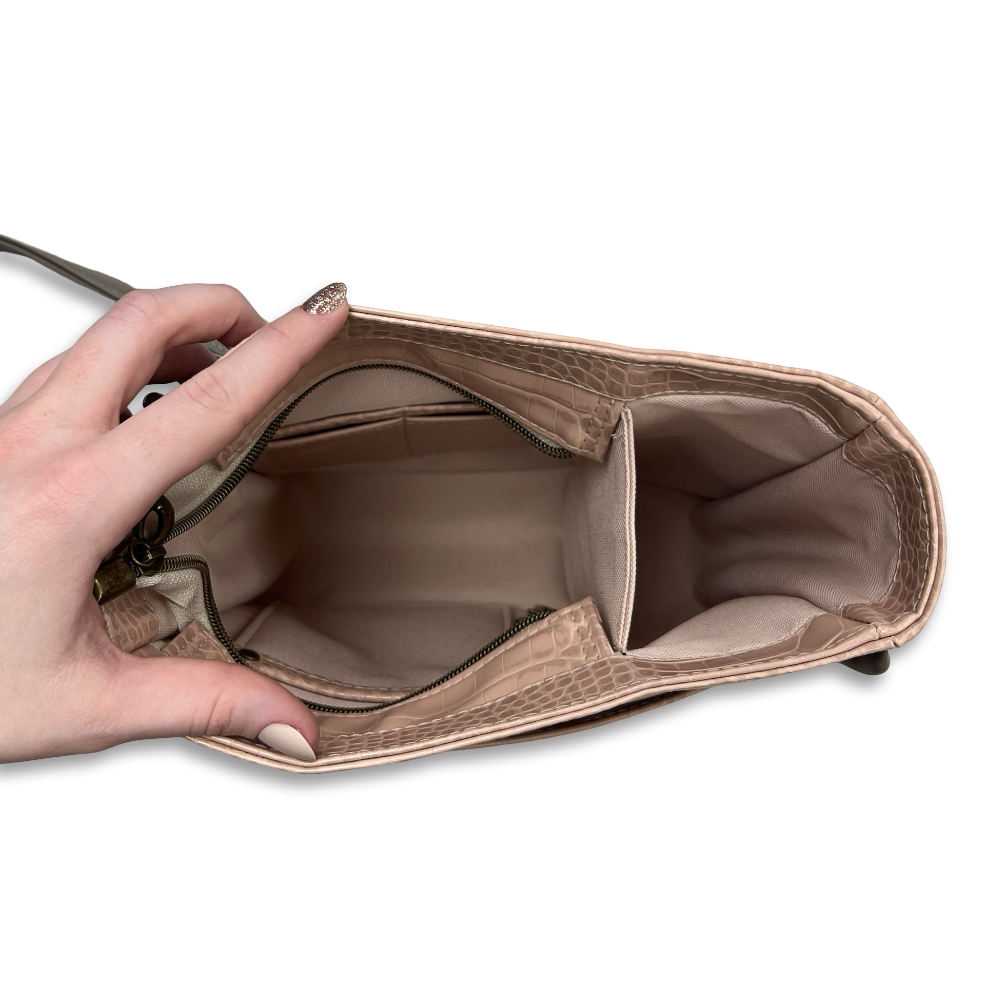 The Lil’ Leah has an adjustable crossbody strap for hands-free carrying.